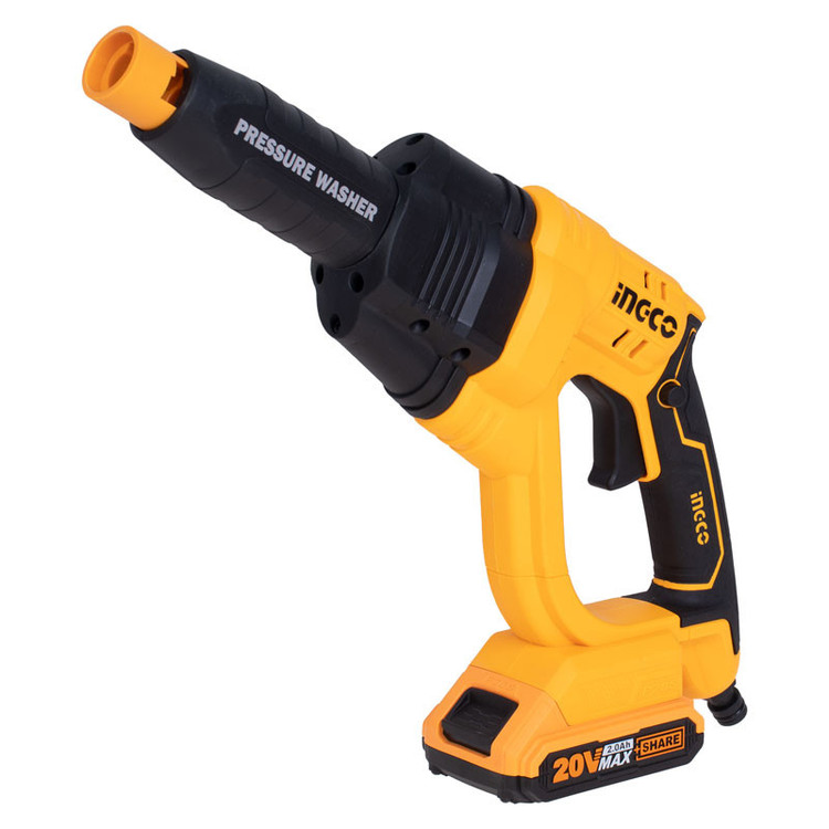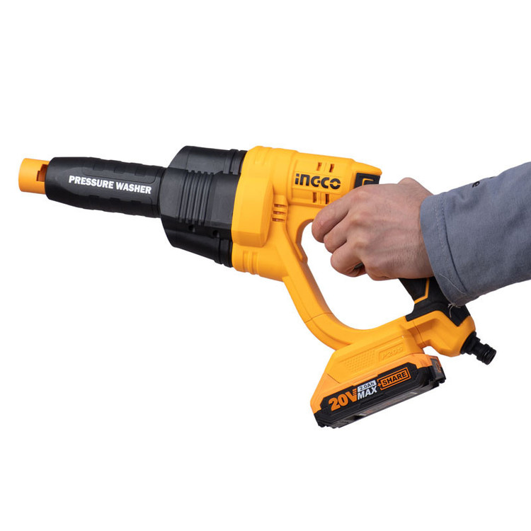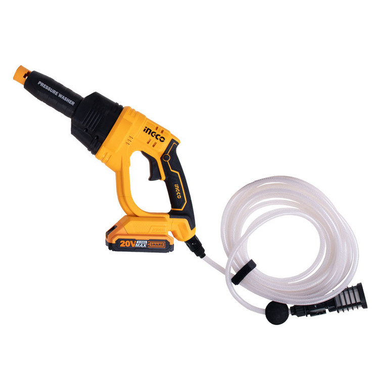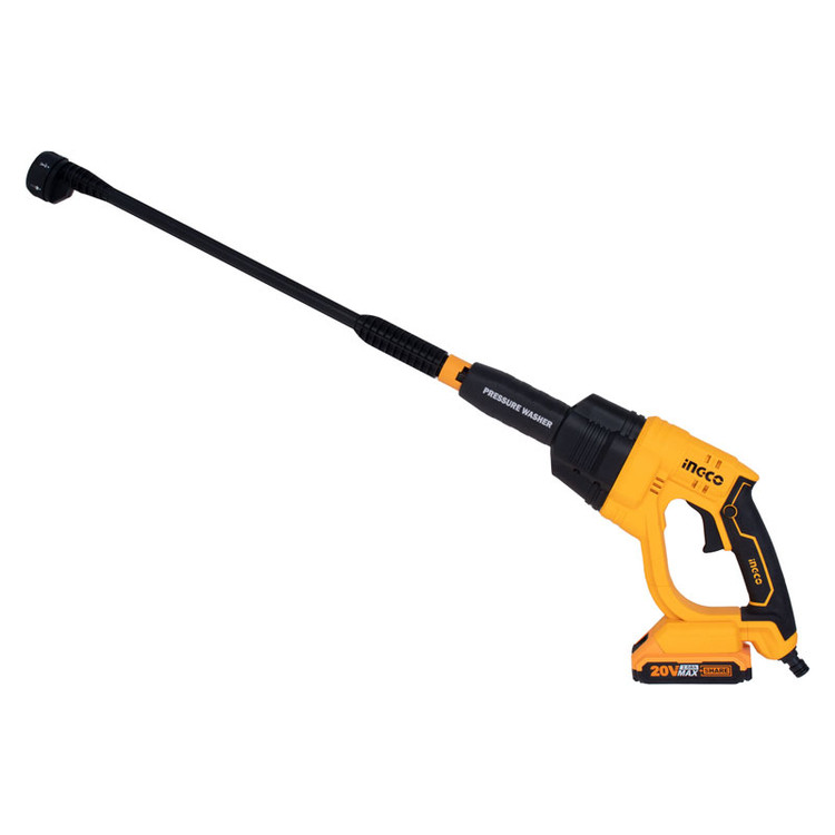 کارواش و سمپاش شارژی 20 ولت اینکو مدل CPWLI20082، برای استفاده های کارگاهی و خانگی بدون نیاز به برق شهری و همچنین وزن سبک و قابل حمل بودن این دستگاه، محدودیت کارواش های دیگر را برای کاربر ندارد، مزیت مهم این دستگاه سازگاری با هر نوع منبع آب اعم از لوله کشی، تانکر یا حتی یک سطل آب برای شستشو می باشد. از این محصول می توان برای سمپاشی درختان و محصولات کشاورزی نیز استفاده کرد.این کارواش همراه با باطری و شارژر است.