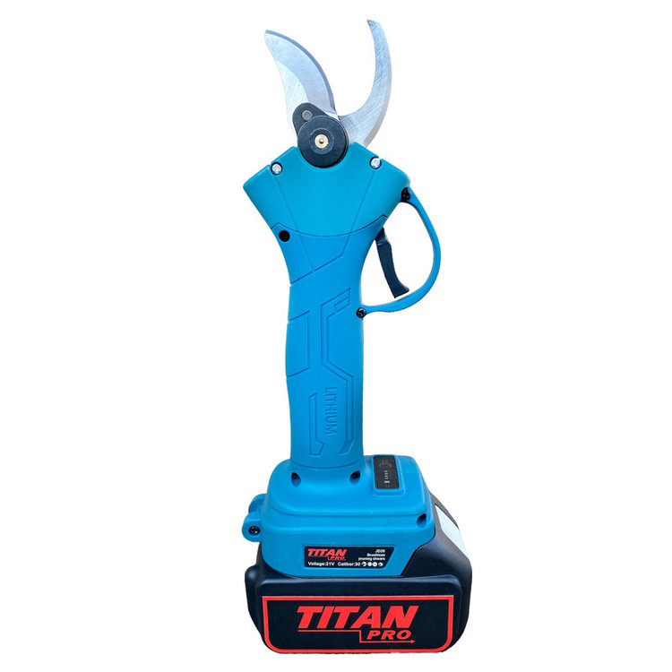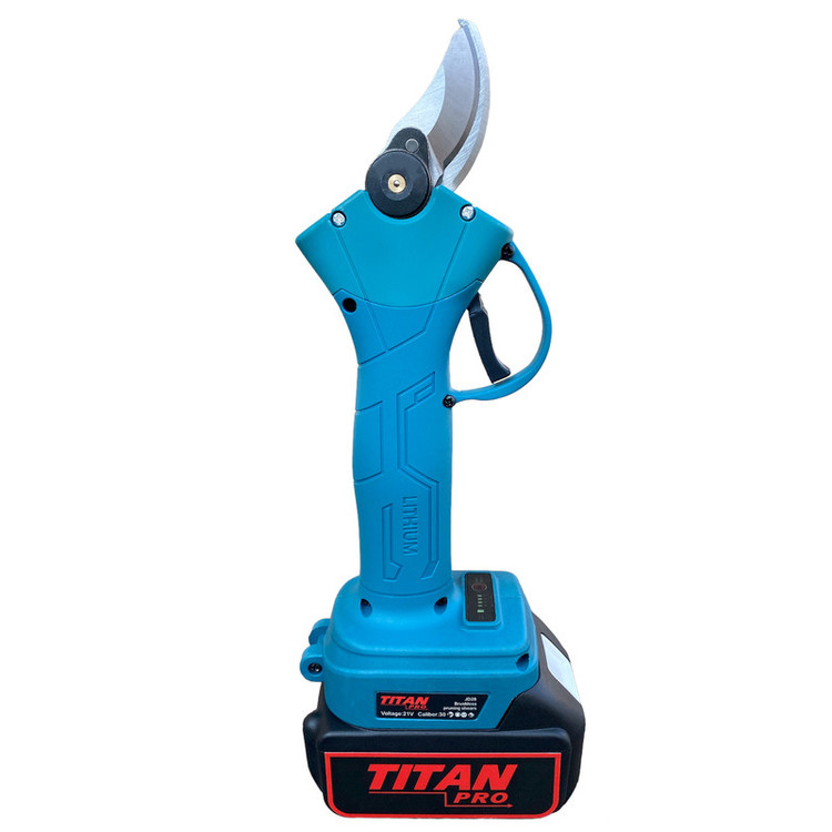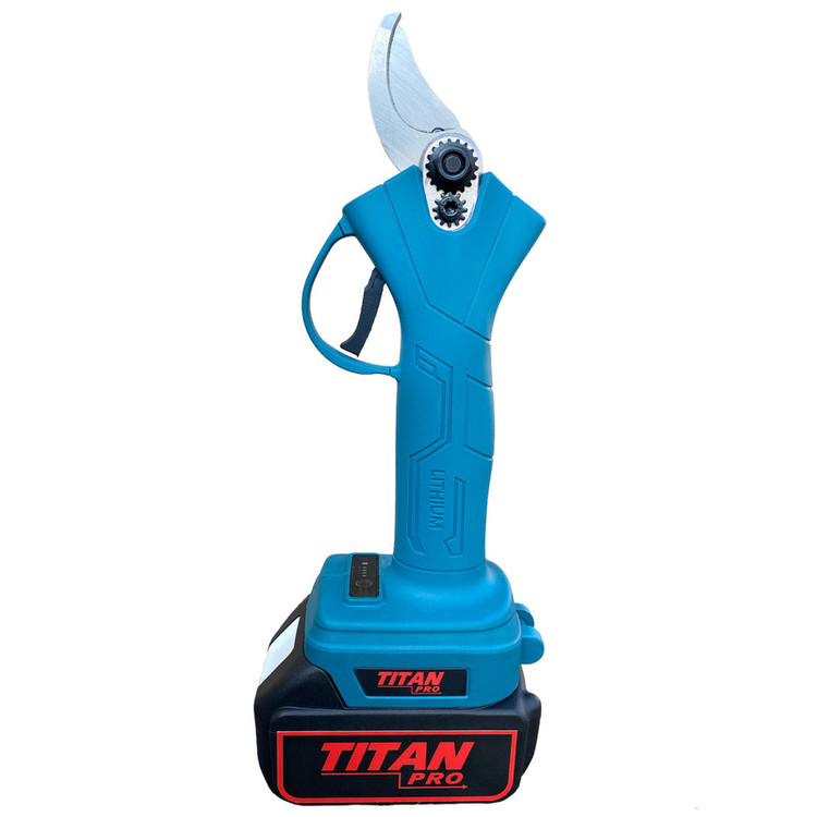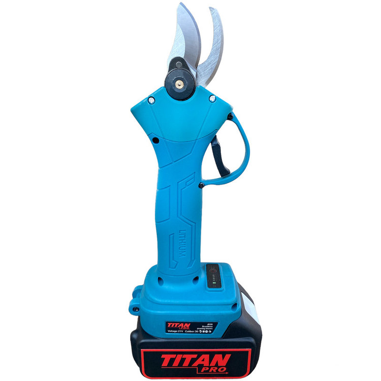 یکی از ابزارهایی که هر باغبانی به آن نیاز دارد قیچی باغبانی است. هرس کردن تعداد زیاد درخت ها با قیچی های دستی کاری حوصله سر بر و خسته کننده است. اما استفاده از قیچی باغبانی شارژی کار هرس کردن درخت ها را بسیار راحت و دلچسب تر می کند. شرکت تیتان پرو محصولی را به بازار عرضه کرده که می توان شاخه هایی تا قطر 3 سانتی متر را برید. این قیچی دارای دو باتری لیتیوم یونی 21 ولت 3 آمپری بوده و تقریبا با هر باطری می توان تا 3 ساعت بطور مداوم با آن کار کرد. باتری های لیتیومی دارای سرعت شارژ و عمر بالاتری نسبت به دیگر باتری ها هستند. این قیچی شارژی از سرعت بسیار بالایی برخوردار بوده و برای هرس کردن بسیار ایده آل است. تیغه های این قیچی شارژی باغبانی از جنس فلز مقاوم بوده و با استفاده از سوهان تیغه تیز کنی که همراه این دستگاه است می توانید آن را تیز تر کنید. این قیچی به نسبت قیمت قیچی باغبانی شارژی های دیگر قدرت، طول عمر، مانور و سرعت کار و دقت کار بیشتری در اختیار شما می گذارد. بدنه این دستگاه از پلاستیک مقاوم ساخته شده و در برابر ضربه و فشار مقاوم است. دسته این قیچی باغبانی شارژی به صورت ارگونومیک طراحی و ساخته شده و کار با آن به مدت طولانی شما را خسته نمی کند. این قیچی دارای موتور براش لس است. موتور های براش لس، نیازی به تعویض جاروبک یا تعویض زغال ندارند و دارای عمر بالاتر و انرژی مصرفی کمتری نسبت به موتور های باجاروبک دار و زغال دار هستند. موتور این دستگاه به گونه ای طراحی شده که به نسبت حجم قدرت بیشتری تحویل دهد. این قیچی دارای چهار حالت مختلف جهت برش میباشد که با توجه به نیاز کاربر می توان باز شدن دهانه ی قیچی را تنظیم نمود. همچنین این دستگاه دارای نشانگر میزان شارژ باتری میباشد. ساخت و پردازش این دستگاه با بالاترین کیفیت متریال تحت نظارت شرکت انگلیسی در کشور چین صورت گرفته است.