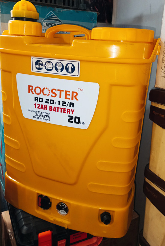 سمپاش شارژی دوکاره برند رووستر با باطری ۱۲ولت ۱۲امپر(باطری بزرگ) و پمپ تقویت شده (پاشش بالای ۷متر).با کیفیت استثنایی.دارای لانس برنجی.انواع نازل. دارای پمپ مکانیکی در صورت عدم شارژ باطری.