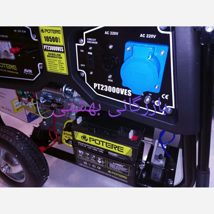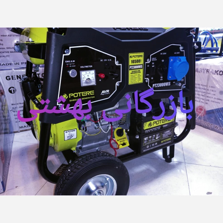 موتور برق پوتر با خروجی ده و نیم کیلو وات واقعی و خروجی آمپر 43 یک محصول حرفه ای و قدرتمند .دارای چرخ و دسته.شاسی سنگین و مستحکم .سیستم نوسان گیر.سیستمهوشمند قطع کن روغن .استارتی و هندلی .بهترین و خوش قیمت ترین موتور برق بازار .