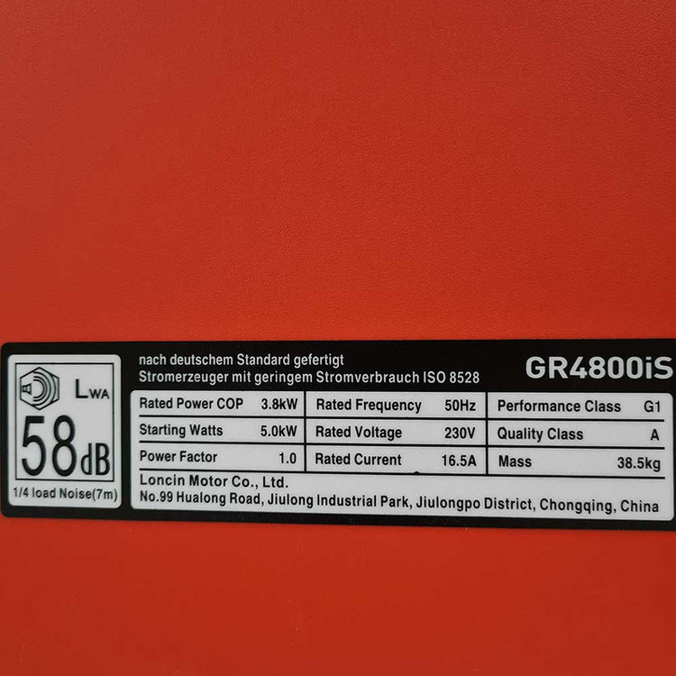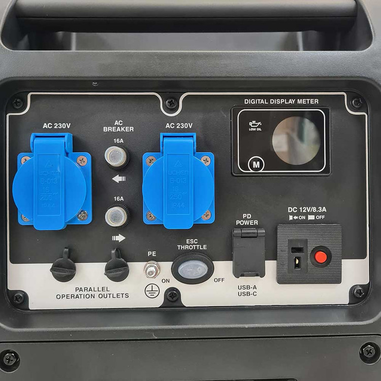 ویژگیهای موتور برق : استارت الکتریکی , استارت دستی , تکفاز , دارای چرخ , سیستم خنککنندگی از راه پره , سیستم خنککنندگی از راه هوا , ولتاژ خروجی 12 ولت DC