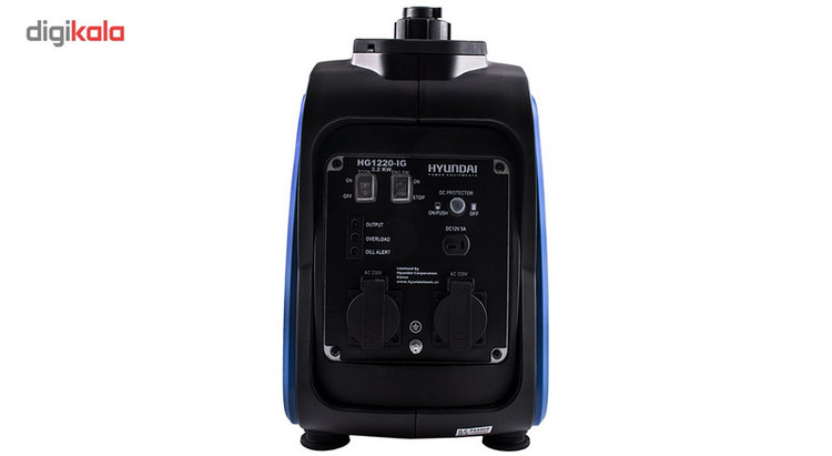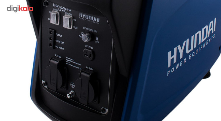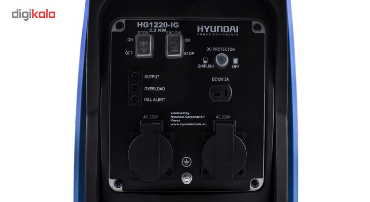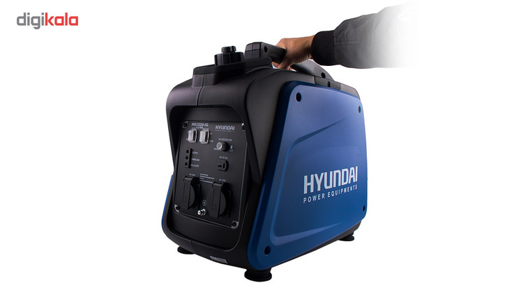موتور برق فوق مدل «HG1220-IG» نام دارد. شرکت کرهای «هیوندای» (Hyundai) این دستگاه را تولید میکند. این دستگاه انرژی مورد نیاز خود را از بنزین تامین کرده و بهاین طریق انرژی الکتریکی تولید میکند. حجم موتور دستگاه فوق 60 سی سی است و از قدرتی برابر 1.6 اسب بخار برخوردار است. مخزن سوخت این موتور برق ظرفیتی 4.1 لیتری دارد. با کمک این دستگاه میتوانید انرژی الکتریکی را به دو صورت جریان AC و DC دریافت کنید. خروجی برق AC این موتور برق با درپوش ضد آبی محافظت میشود و از ولتاژی برابر 230 ولت برخوردار است. خروجی برق DC این دستگاه نیز ولتاژی 12 ولتی دارد و شدت جریان آن 4 آمپر است. قدرت خروجی این دستگاه 2200 وات است. این موتور برق دو حالت برای روشن شدن دارد. یکی از حالتها توان خروجی کمتری دارد و فشاری به دستگاه وارد نمیکند و حالت دوم برای برخورداری از حداکثر توان دستگاه مورد استفاده قرار میگیرد. این دستگاه باکمک سه لامپ ال ای دی، کاربر را از وضعیت توان خروجی، اورلود و هشدار روغن آگاه میسازد.