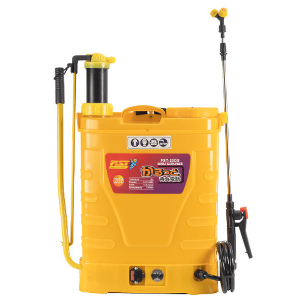 سمپاش مدل 20DS محصول برند خوش نام FST می باشد. این شرکت با تولید تخصصی انواع سمپاش های با کیفیت شناخته شده است و دارای جایگاه خوبی در بازار می باشد. از مهترین مزیتهای سمپاش شارژی FST-20DS دوکاره بودن این دستگاه می باشد که هم قابلیت استفاده دستی را دارد و هم می تواند به صورت موتوری که با باتری شارژی کار می کند، پاشش را انجام دهد. در این سمپاش از باتری با کیفیت 12ولت (8 تا 12 آمپرساعت) استفاده شده میزان پاشش این سمپاش به صورت عمودی 6 متر و افقی 9 متر است. همچنین این سمپاش مجهز به گیج نشان دهنده میزان شارژ باتری نیز هست. این مدل دارای لنس فلزی با نازلهای (سریهای) پرکاربرد بوده. وجود بند کولی باعث حمل و استفاده راحت و سیار از این سمپاش شده است. این سمپاش جهت از بین بردن آفات، حشرات و غیره استفاده میشود. در منزل و یا در گلخانهها و یا باغچهها و باغها عمدتا از این نوع سمپاش استفاده میشود. همچنین ازاین سمپاش جهت ضدعفونی یا گندزدایی و میکروب کشی در محیطهایی از قبیل محوطههای بسته و باز مانند بیمارستان ها یا مراکز تجاری و غیره میتوان استفاده نمود. حجم مخزن این سمپاش 20 لیتر است و دارای بند رو دوشی جهت آویزان کردن بر روی دوش هست تا هنگام سم پاشی کاربر بدون خستگی و با سرعت سم پاشی و مراقبت و نگهداری از گیاهان را را انجام دهد. با استفاده از این سمپاش در وقت و انرژی کاربر صرفهجویی چشمگیری میشود. جهت کاهش شکستگی مخزن، ضخامت مخزن این سمپاش تا حد قابل ممکن افزایش داده شده است.