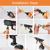 نازل چند کاره 3 در 1: واشر فشار قوی ما دارای نازل قابل تنظیم است: 0 درجه، جهت اریب 40 درجه، فوم فوم یا جریان سنگین 0 درجه. نازل اسپری چندگانه به شما امکان می دهد بین درجات مختلف شدت جریان آب جابجا شوید که به شما امکان می دهد تمام فضاهای بیرونی و وسایل خود را به راحتی و به سرعت تمیز کنید. این ماشین لباسشویی با فشار ماشین تمیز کردن شما را راحت تر از سایرین با نازل های قابل تعویض می کند. سبک وزن و آسان برای مونتاژ: این واشر شارژی فشار بالا حدود 2567 گرم است و دارای یک شلنگ 5M است که به راحتی قابل ذخیره سازی است. در مقایسه با ماشینهای لباسشویی سنتی، ماشین لباسشویی شارژی ما سبکتر و قابل حملتر است. فقط چند دقیقه برای تکمیل نصب و شروع کار خود وقت گذاشتید. عملکردهای چندگانه و کاربرد: تمیز کردن و نگهداری انواع وسایل نقلیه موتوری، وسایل نقلیه مهندسی، ماشین آلات مهندسی و محصولات پشتیبانی کننده ماشین آلات کشاورزی. تفنگ شستشوی فشار ما به ویژه برای تمیز کردن دیوارهای بیرونی ساختمان ها، کف، حمام، استخر، درها و پنجره ها و گوشه هایی که تمیز کردن دستی آنها دشوار است، موثر است. این بهترین ماشین لباسشویی تحت فشار برای کمپینگ در فضای باز و سفرهای طولانی است. محافظت از شارژ هوشمند: شارژر هنگام شارژ یک چراغ قرمز نشان می دهد و هنگامی که برق پر شد، به طور خودکار شارژ را متوقف می کند و یک چراغ سبز نشان می دهد. (یادآوری: برای طول عمر باتری، اگر به طور مکرر از آن استفاده نمی کنید، لطفاً ماهی یک بار آن را شارژ نگه دارید.)