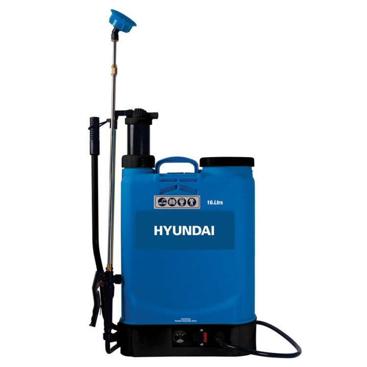 سمپاش شارژِ هیوندای مدل HP1681 . این دستگاه کوله ای می باشد که می توان هم به صورت شارژی و هم دستی استفاده کرد. لانس دستگاه از جنس استیل می باشد و بدنه آن از جنس پلاستیک فشرده می باشد. دارای مخزن 16 لیتری می باشد، دستگاه از باطری 12 ولت 1.5 آمپر بهره می برد،آمپر خروجی بین 1.5تا 4 آمپر است. فشار خروجی 1.3 لیتر بر دقیقه می باشد.