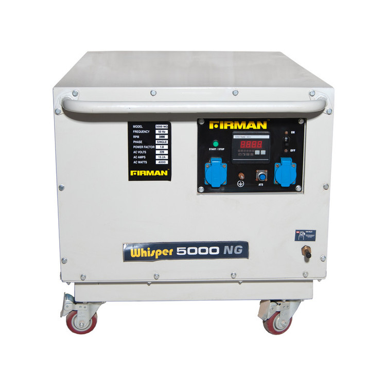 موتور برق یا مولد الکتریکی دستگاهی است که انرژی مکانیکی حاصل از سوخت گاز یا بنزین و گازوئیل را به انرژی الکتریسیته تبدیل می کند موتور برق جهت مصارف خانگی، ویلا، ساختمان، بیمارستان ها، بانک ها و مراکز مهم امنیتی، دیتا سنترها، سرورها، کارگاهی، مصارف اضطراری، موتور برق کوچک، کیفی، کارخانه و کارگاه، جهت امداد و نجات، ژنراتورهای کوچک قابل حمل و پرتابل...کاربردهای دیگر موتوربرق ها شامل استفاده و برق رسانی به پمپ های مختلف آب ،کفکش ها ،استفاده برای الکترو موتورها و سیستم های روشنایی و…می باشد. موتور برق فیرمن مدل 5000 NGدارای قدرت 4500 وات و سوخت آن گاز می باشد می باشد سیم پیچی آن تمام مس می باشد و مجهز به تثبیت کننده ولتاژ می باشد موتور این دستگاه چهار زمانه بوده و دارای دو خروجی 220 ولت می باشد.
