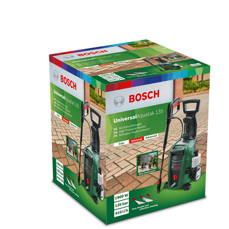 شرکت (Bosch) «بوش» یکی از بزرگترین و معروفترین شرکتهای تولید لوازم و دستگاههای خانگی و صنعتی است که سالهاست در این زمینه فعالیت میکند. اینروزها کمتر کسی است که نام این برند معروف را نشنیده باشد و از کیفیت محصولاتش بیخبر باشد. این شرکت یکی واز جدیدترین محصولاتش را به نام کارواش فشارقوی مدل (Universal Aquatak 135) به بازار عرضه کرده است.کارواش بوش مدل Universal Aquatak 135 را میتوان محصولی تمام عیار از شرکت بوش آلمان دانست که همیشه در تولید ابزار آلات صنعتی در دنیا بی رقیب بوده است . کارواش بهصورت هوشمند عمل کرده و دارای سامانه توقف خودکار دستگاه است. این قابلیت باعث میشود تا هنگامی که کاربر با دستگاه کار نمیکند، دستگاه متوقف شده و در مصرف آب و برق صرفهجویی شود.این دستگاه توان بسیار بالایی برابر 1900 وات دارد که قادر است آب را با حداکثر فشار برابر 135 بار از نازل خود خارج کند. نازل لنس دستگاه نیز به شکل سه در یک بوده و قادر است جریان خروجی را در سه حالت مختلف ساده، چرخشی و همراه با حباب هوا در اختیار کاربر قرار دهد.بزرگترین ویژگی این دستگاه کارواش پمپ تمام فلزی سه سیلندری آن می باشد . این دستگاه مجهز به سیستم پیشرفته فوم پاش می باشد . همچنین این دستگاه قابلیت ساکشن آب را دارا می باشد که این مورد از ویژگی ی این کارواش بسیار کاربردی می باشد بخصوص در زمانی که شما به شیر آب دسترسی ندارید و تنها با یک سطل آب میخواهید از کارواش استفاده کنید . طول لنس این دستگاه 7 متر می باشد . بسیاری از موارد کیفی و زیبایی منحصر به فرد این دستگاه باعث شده این دستگاه در نوع خود در دنیا بی رقیب باشد .