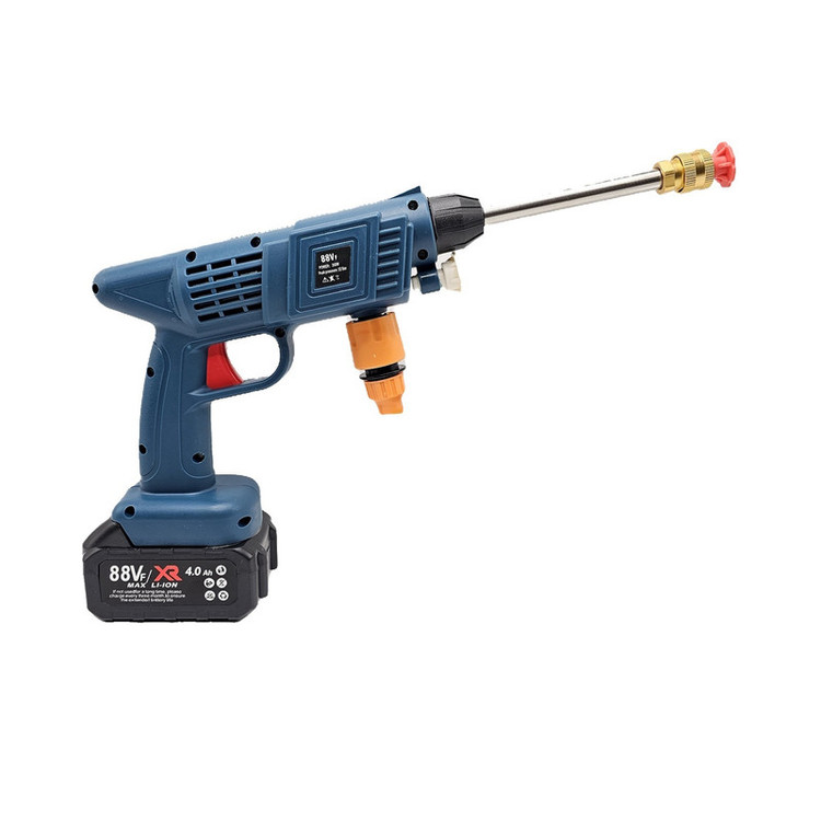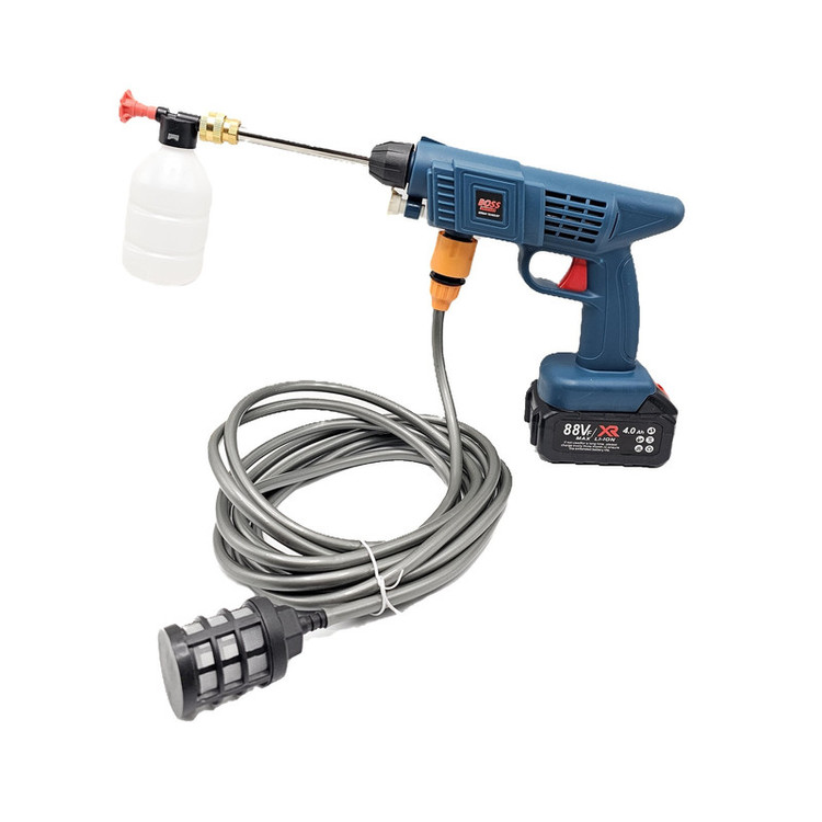 کارواش شارژی خانگی با باطری 88 ولت لیتیومی با قدرت 260 وات است .حسن این دستگاه نسبت به دستگاه های دیگر این است که از سری های پلاستیکی استفاده شده است که نشکن است ودر اثر فشار نمیشکند. حداکثر جریان خروجی سیالات در این کارواش 4 لیتر در دقیقه می باشد و فشار آب در بازه 22 تا 30 بار است. ویژگی کلیدی این کارواش قابلیت تنظیم فشار برای نیازهای مختلف است. از مهم ترین کاربردهای این کارواش می توان به مواردی مثل سمپاشی، تمیزکاری و آبیاری، شستشوی خودرو، پارکینگ، استخر، مبلمان، باغ، دوچرخه و … اشاره کرد. کارواش های شارژی یکی از اقلام ضروری برای در هر خانه به شمار می رود. طراحی این نوع کارواش ها به گونه ای است که بدون نیاز به آب فراوان یا حتی برق می توان از آن استفاده نمود. با استفاده این کارواش می توانید به راحتی و با صرفه جویی در مصرف آب، تنها با یک سطل آب، آبیاری سریع و پرفشاری را در منزل ، باغ ، زمین کشاورزی و … تجربه کنید. . فشار آب این کارواش خانگی در بازه 22 تا 30 بار قرار دارد که ویژگی قابل توجه این کارواش قابلیت تنظیم فشار آن است که می توانید با توجه به نیاز خود و آلودگی محل مورد نظر، آن راتنظیم نمایید. معمولاً فشارهای پایین برای آبیاری گیاهان و فشار بالا برای شستشوی وسایل نقلیه و … مورد استفاده قرار می گیرد. طول پاشش این کارواش تا 5 متر می باشد. باطری های قابل شارژ این کارواش نیز باعث در دسترس بودن همیشگی این کارواش حتی در مکان هایی که به برق دسترسی ندارید شده است.
