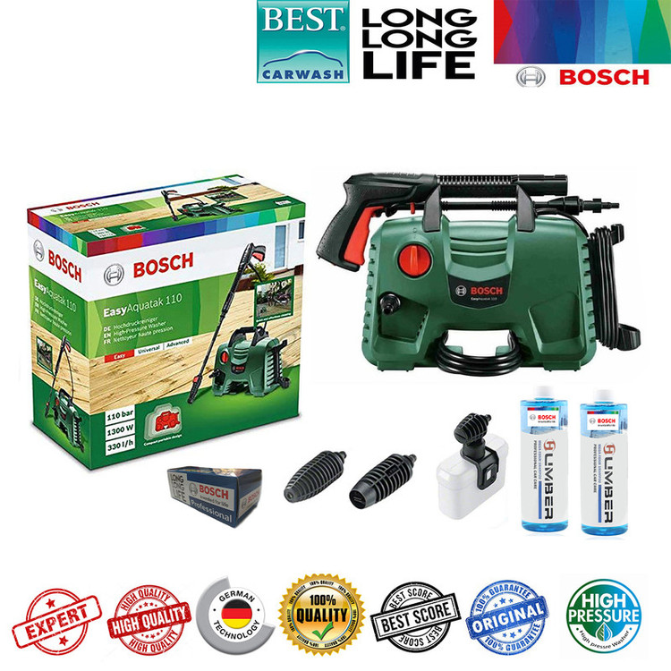 شرکت (Bosch) «بوش» یکی از بزرگترین و معروفترین شرکتهای تولید لوازم و دستگاههای خانگی و صنعتی است که سالهاست در این زمینه فعالیت میکند. اینروزها کمتر کسی است که نام این برند معروف را نشنیده باشد و از کیفیت محصولاتش بیخبر باشد. این شرکت یکی از جدیدترین محصولاتش را به نام کارواش بوش مدل Easy Aquatak 110 به بازار عرضه کرده است.کارواش بوش مدل Easy Aquatak 110 را میتوان محصولی تمام عیار از شرکت بوش آلمان دانست که همیشه در تولید ابزار آلات صنعتی در دنیا بی رقیب بوده است . کارواش بهصورت هوشمند عمل کرده و دارای سامانه توقف خودکار دستگاه است. این قابلیت باعث میشود تا هنگامی که کاربر با دستگاه کار نمیکند، دستگاه متوقف شده و در مصرف آب و برق صرفهجویی شود.این دستگاه توان بسیار بالایی برابر 1300 وات دارد که قادر است آب را با حداکثر فشار برابر 110 بار از نازل خود خارج کند. بزرگترین ویژگی این دستگاه کارواش پمپ تمام فلزی سه سیلندری آن می باشد . این دستگاه مجهز به سیستم پیشرفته فوم پاش و ساکشن می باشد . طول لنس این دستگاه 3 متر می باشد . بسیاری از موارد کیفی و زیبایی منحصر به فرد این دستگاه باعث شده این دستگاه در نوع خود در دنیا بی رقیب باشد .